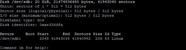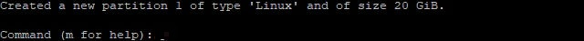 그러면 새로운 파티션이 생성 됐다고 나옵니다. 하지만 마지막 쓰기 명령어를 입력하기 전까지 완전히 만들어진 것은 아닙니다. 아래와 같이 다시 처음 화면에서 본 화면이 나오면 p를 입력하여 만들어진 파티션 정보를 확인합니다.