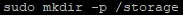 우선 마운트를 진행 할 디렉터리를 만들어야 합니다. 동일하게 sudo명령어와 함께 mkdir 명령어를 통해 디렉터리를 만들어 줍니다. 저는 storage 라는 디렉터리를 생성하였습니다. 원하시는 이름으로 변경하시면 됩니다.