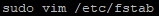 그리고 vim 에디터를 통해 fstab 파일을 수정하여 부팅시 자동으로 마운트 되도록 설정하겠습니다.