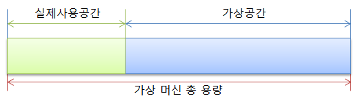 가상 디스크 용량에 대해 추가 설명을 드리면 위의 대화 상자에서 선택하신 모든 용량을 본인의 저장공간(하드 혹은 SSD)에 전부 생성되는 것은 아닙니다. 실제로 저장공간에서 줄어드는 양은 위의 이미지의 실제 사용 공간의 용량만 줄어들게 됩니다. 그러니 본인의 저장공간의 남는 용량을 계산하여 위의 가상 디스크의 용량을 계산하실 필요는 없습니다. 다만, 가상 머신을 사용하시면서 가상 디스크에 용량이 점점 쌓이면 결과적으로는 사용하는 실제 용량도 늘어나게 됩니다.
