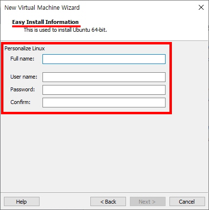이렇게 ISO 파일을 먼저 선택해 주시면 위에서 언급하여 드렸듯이 운영체제를 자동으로 인식하여 위의 이미지와 같이 쉬운 설치로 필요한 정보를 미리 입력하는 화면이 나오기도 합니다. 윈도 ISO를 넣었다면 시디키라든지 사용자 이름과 암호를 입력받을 것입니다. 우선 저는 뒤로 가기를 눌러 운영체제 이미지 없이 가상 머신을 만들어 보도록 하겠습니다.