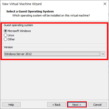 이미지를 없이 가상 머신을 만들게 되면 설치할 운영체제를 수동으로 선택해 주셔야 합니다. 마이크로소프트 윈도, 리눅스 계열, 혹은 기타 운영체제를 선택하시면 아래의 드롭박스를 통해 원하시는 운영체제의 버전을 선택하실 수 있습니다. 제가 선택한 윈도 계열에는 일반적인 xp, 7, 10등의 운영체제도 선택할 수 있지만 위와 같이 서버 계열도 선택하실 수 있습니다. 하지만 위의 선택만으로 운영체제가 설치되는 것이 아니기 때문에 이렇게 선택한 운영체제의 이미지 파일이 없다면 사용하실 수 없습니다.